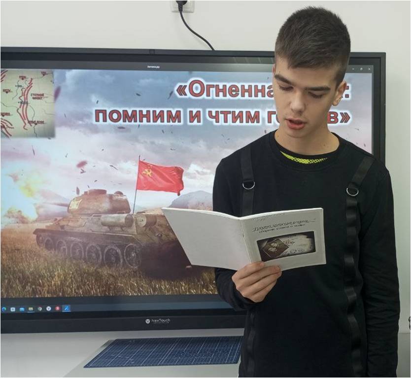 Балаковский филиал ГУК «Областная специальная библиотека для слепых» провёл для воспитанников ГБОУ СО «Школа-интернат для обучающихся по адаптированным образовательным программам г. Балаково» урок мужества «Огненная дуга: помним и чтим героев», посвящённый Дню разгрома советскими войсками немецких войск в Курской битве. Сотрудники библиотеки рассказали о ходе и значении одного из ключевых сражений Второй мировой и Великой Отечественной войн - Курской битвы, решающей на Восточном фронте. Битва на Курской дуге была показана в том числе глазами поэтов и писателей-фронтовиков. Школьники читали стихи, посвящённые Великой Победе; посмотрели отрывок «Огненная Дуга» из исторической киноэпопеи Юрия Озерова «Освобождение»; совершили виртуальную экскурсию по историко-художественному музею-диораме «Курская дуга. Белгородское направление».
