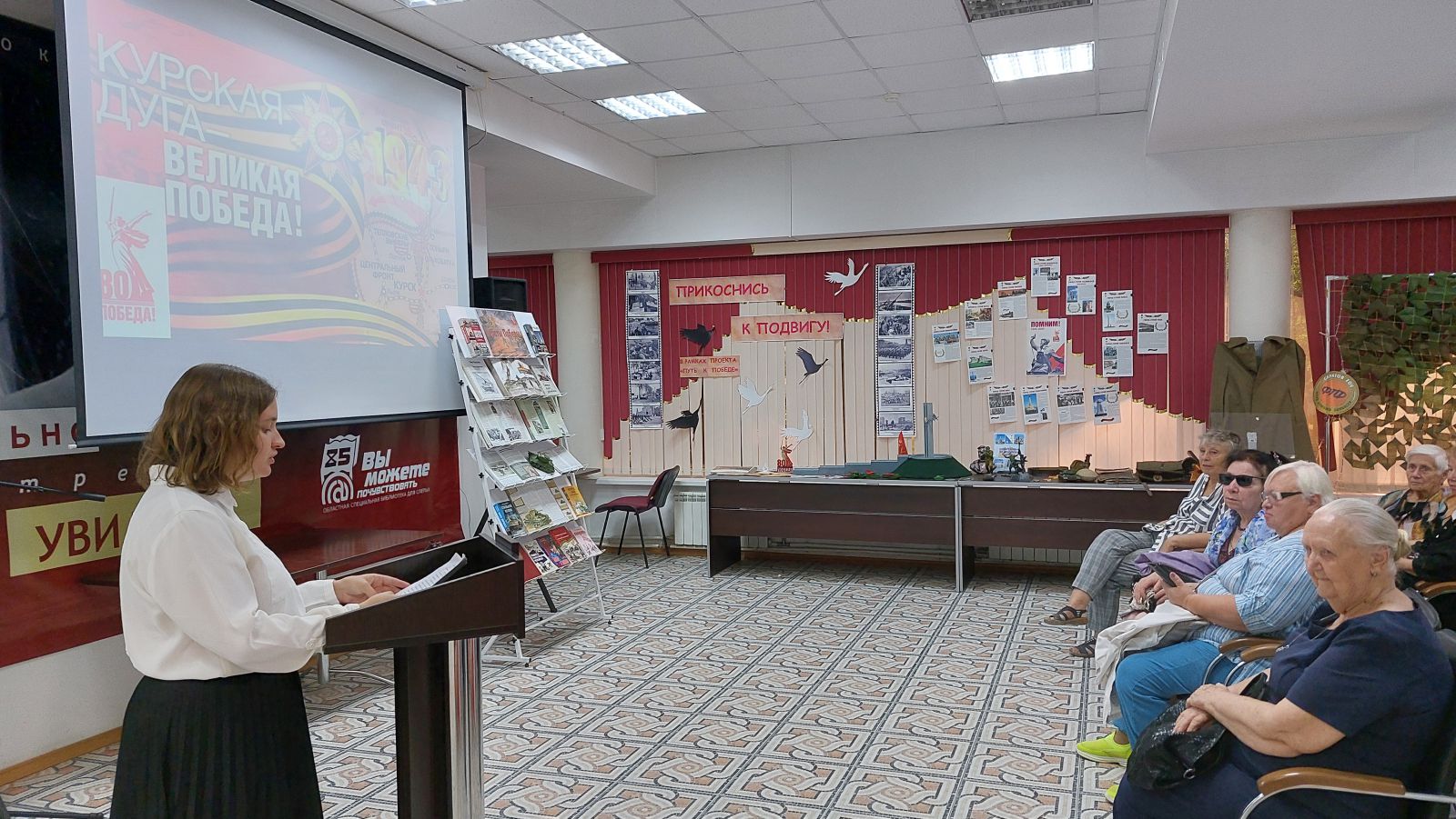 В рамках проекта «Путь к Победе» в ГУК «Областная специальная библиотека для слепых» прошла литературно-историческая беседа «Курская дуга – Великая Победа», посвященная Дню разгрома советскими войсками немецко-фашистских войск на Курской дуге (1943 г.).