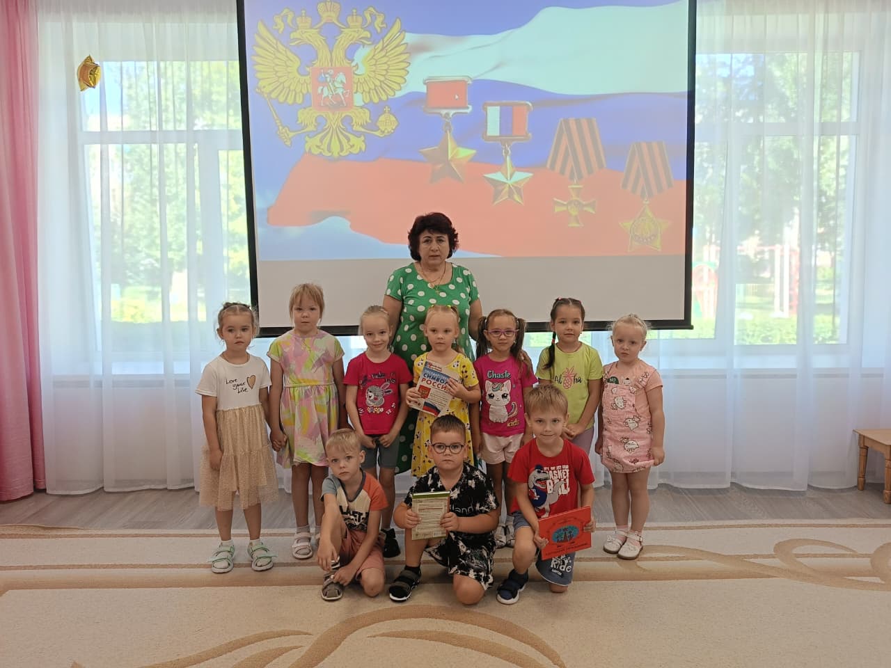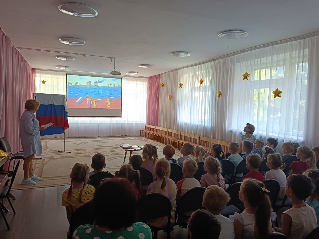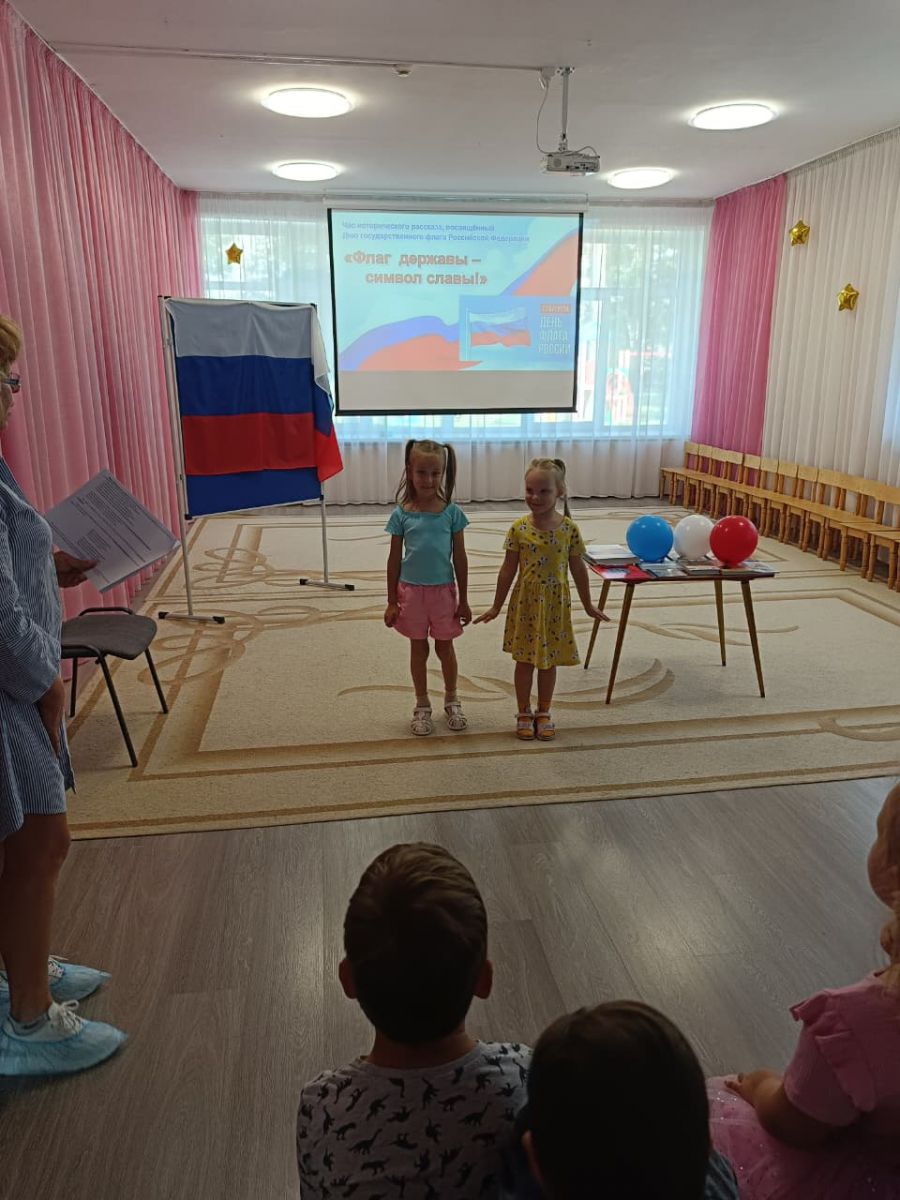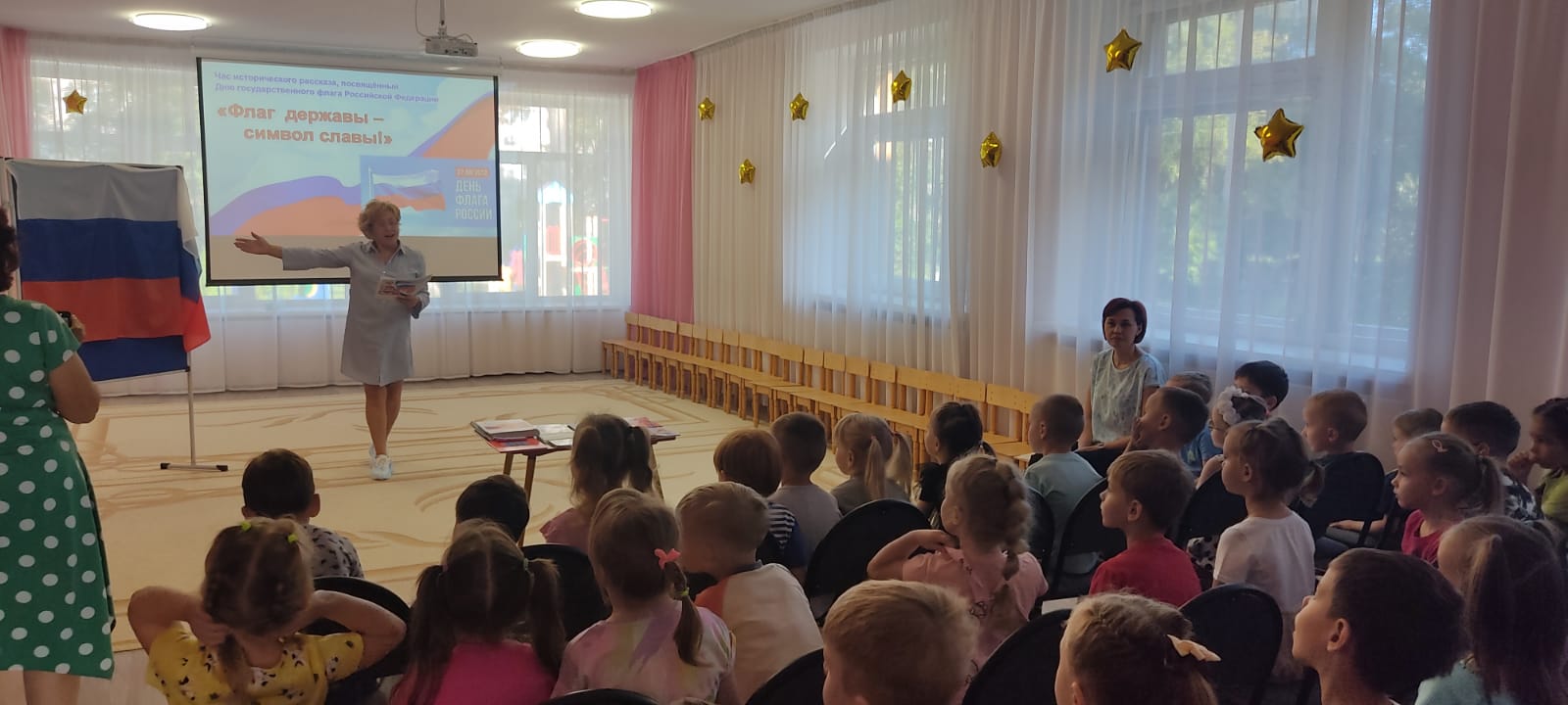Балаковский филиал Областной специальной библиотеки для слепых подготовил для воспитанников МАДОУ детский сад №5 комбинированного вида «Умка» час исторического рассказа «Флаг державы – символ славы», посвящённый Дню Государственного флага Российской Федерации. Сотрудники библиотеки рассказали детям о символах государственной власти в России, о российских знамёнах от древних времён до современности и об истории возникновения триколора. Прозвучали отрывки из художественных и музыкальных произведений о России. Малыши прочитали стихи о флаге России, посмотрели отрывок из мультфильма об истории флага на Руси, сложили флаг Российской Федерации из воздушных шаров, познакомились с книгами о России и символике страны.