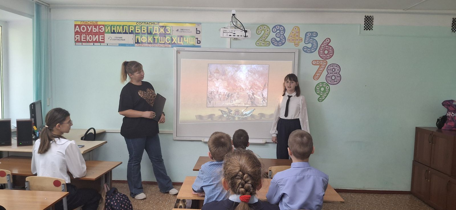 Ребята узнали, что Бородинское сражение – это крупнейшее сражение Отечественной войны 1812 года между русской армией под командованием М. И. Кутузова и французской армией под командованием Наполеона I Бонапарта. Они познакомились с героями Отечественной войны: с выдающимися полководцами и военачальниками. Познакомились с произведением М. Ю. Лермонтова «Бородино», которое прочитала Астафьева Милана.