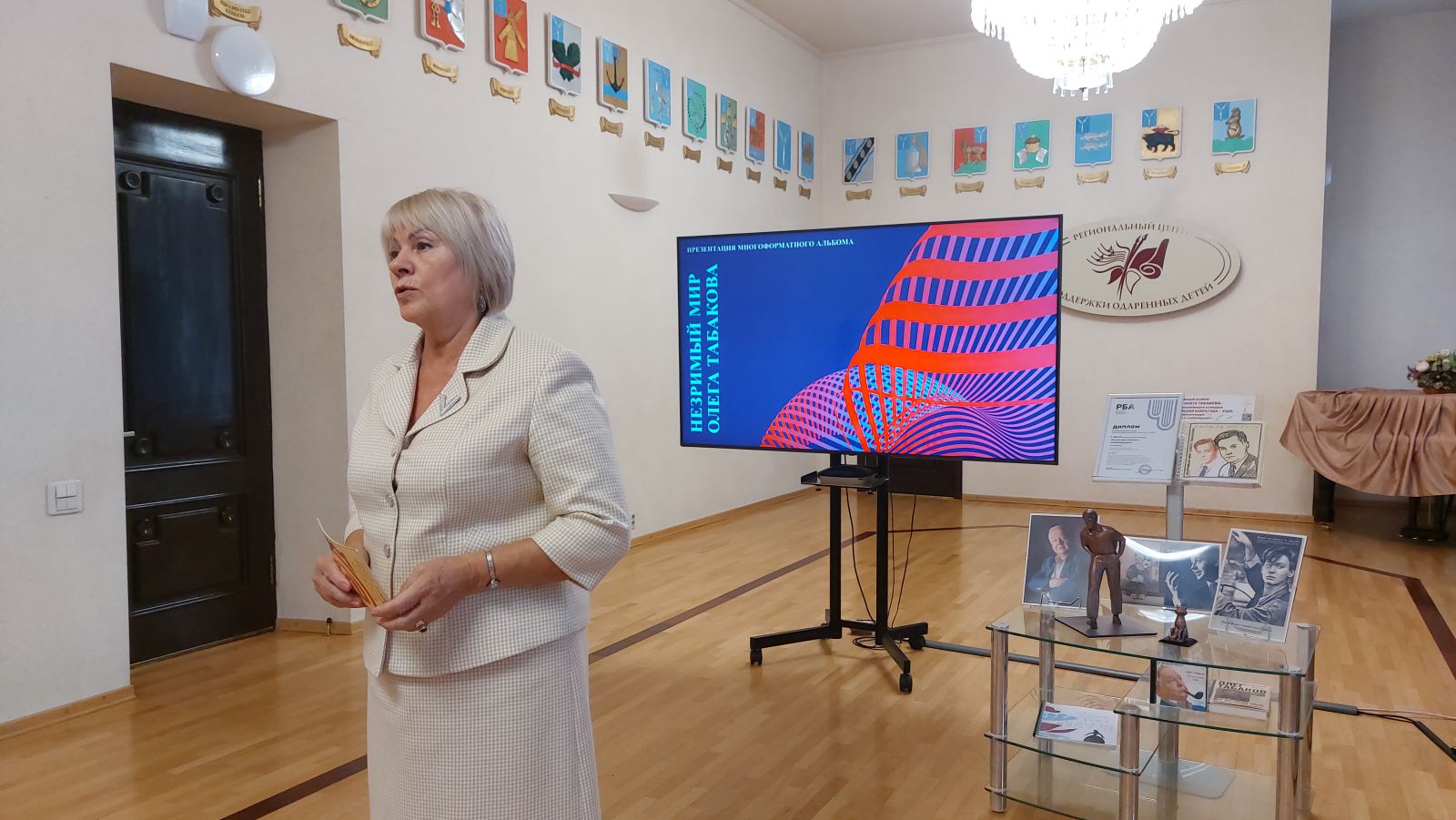 Ольга Ивановна пригласила всех погрузиться в мир Олега Табакова. Представила сотрудников отдела издательских и медиатехнологий государственного учреждения культуры «Областная специальная библиотека для слепых», которые работали с радостью и вдохновением над созданием альбома: