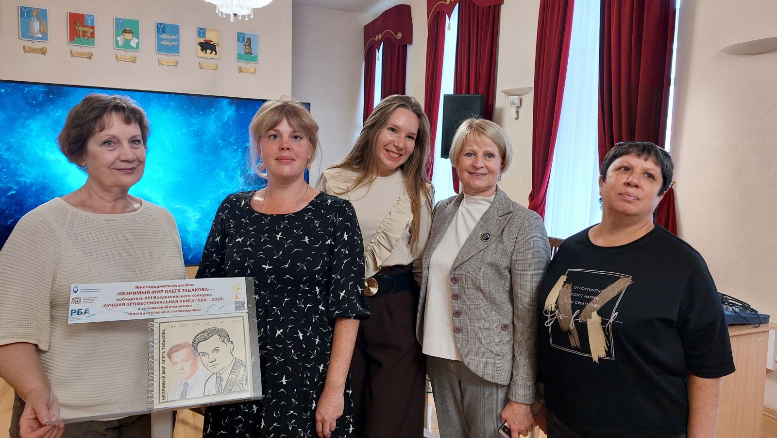 С большой гордостью Ольга Ивановна объявила, что 3 сентября в рамках 38-й Московской международной книжной ярмарки на стенде РБА были подведены итоги XIII Всероссийского конкурса «Лучшая профессиональная книга года – 2025». Председатель жюри конкурса – Вадим Валерьевич Дуда, президент Российской библиотечной ассоциации, генеральный директор Российской государственной библиотеки. В специальной номинации «Книги для слепых и слабовидящих» альбом «Незримый мир Олега Табакова» занял первое место. Участвуя в конкурсе, мы рассказываем, как современная библиотека при помощи новых технологий меняет мир чтения у людей с ограничениями зрения.