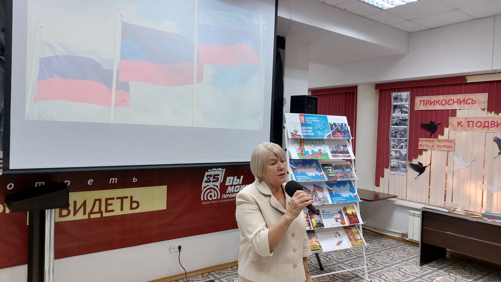 В ГУК «Областная специальная библиотека для слепых» прошло патриотическо-просветительское мероприятие «Под флагом России». В зале была представлена тематическая выставка «Одна страна. Одна семья. Одна Россия», выставки «Время героев не проходит…», «Прикоснись к подвигу!».