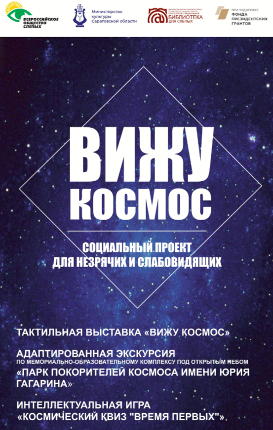 Проект реализуется Саратовской областной общественной организацией Общероссийской общественной организации инвалидов «Всероссийское общество слепых» совместно с государственным учреждением культуры «Областная специализированная библиотека для слепых» при поддержке Фонда президентских грантов.