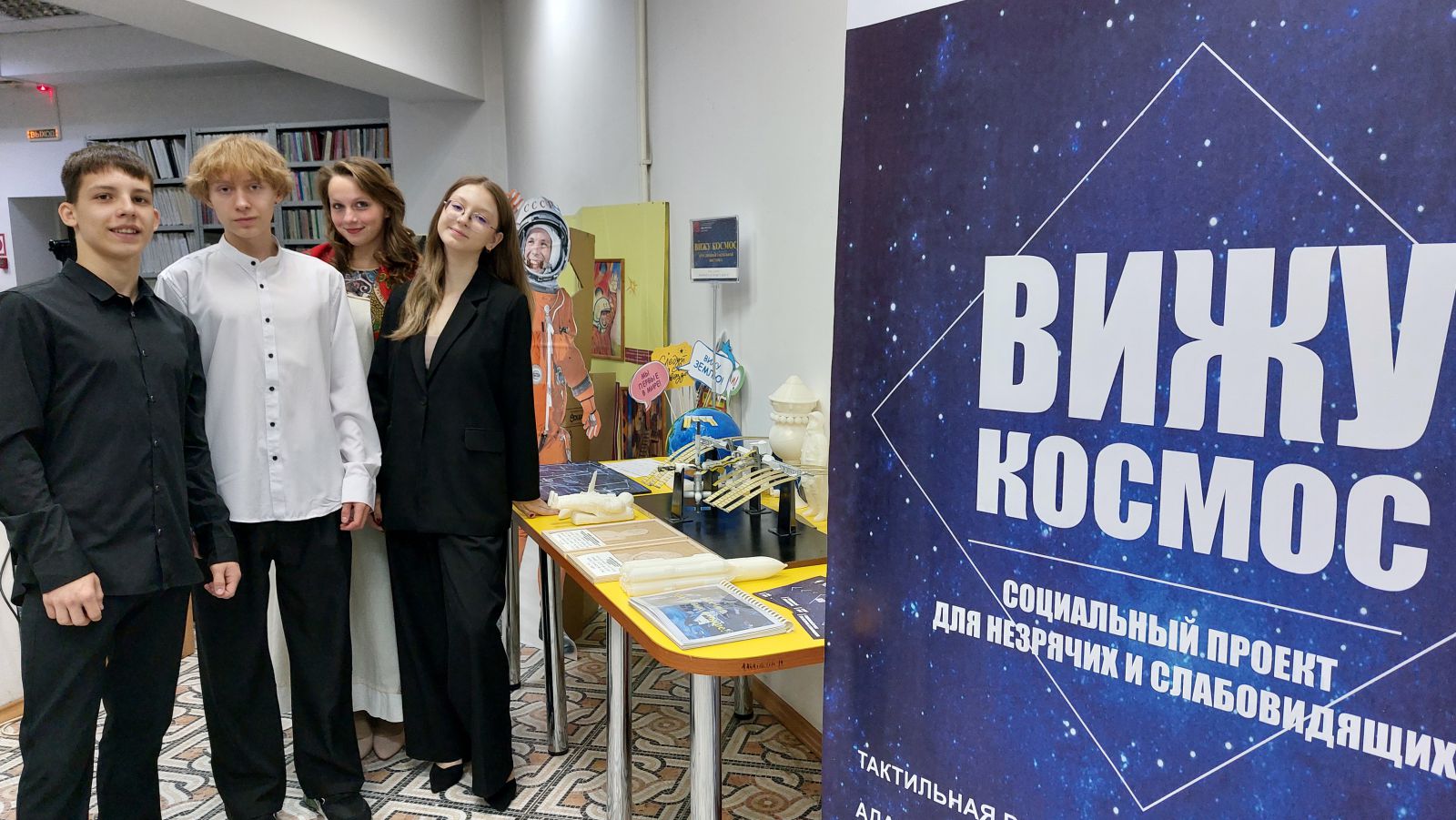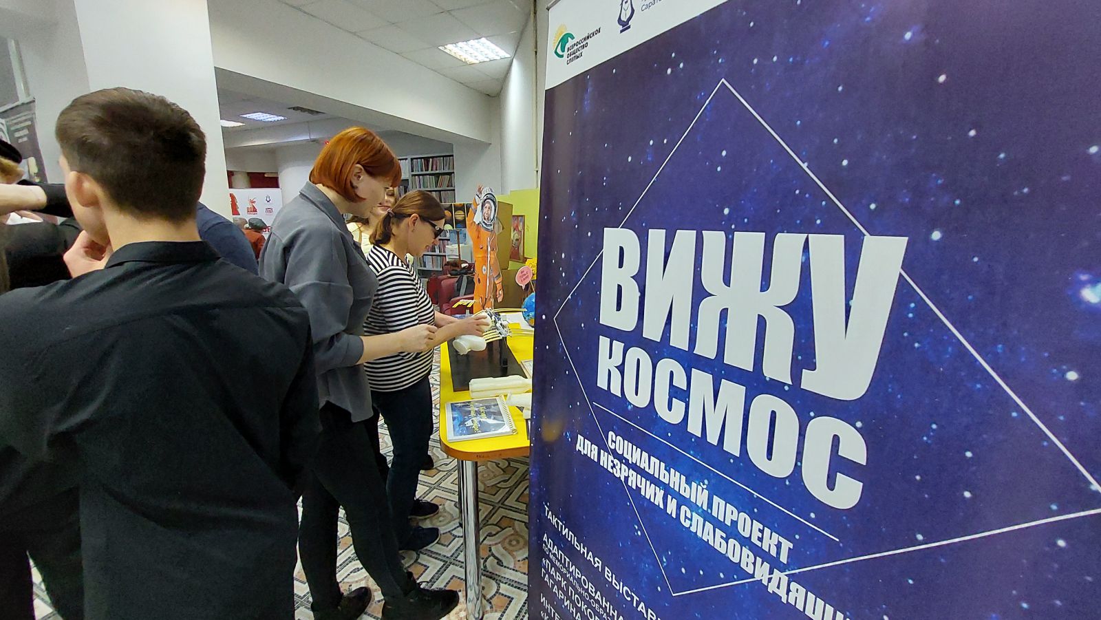 Тактильная выставка представлена в рамках социального проекта для незрячих и слабовидящих «Вижу космос».