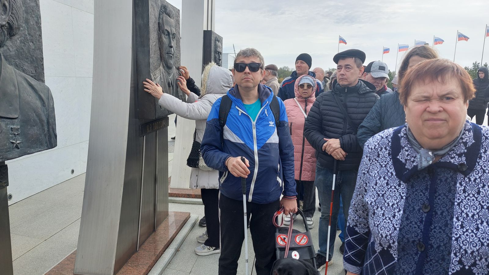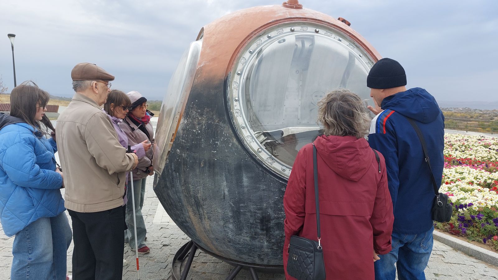 Участники экскурсии с различными нарушениями зрения побывали на двух локациях: место приземления Юрия Гагарина и место приземления спускаемого аппарата, в народе называемого «капсулой».