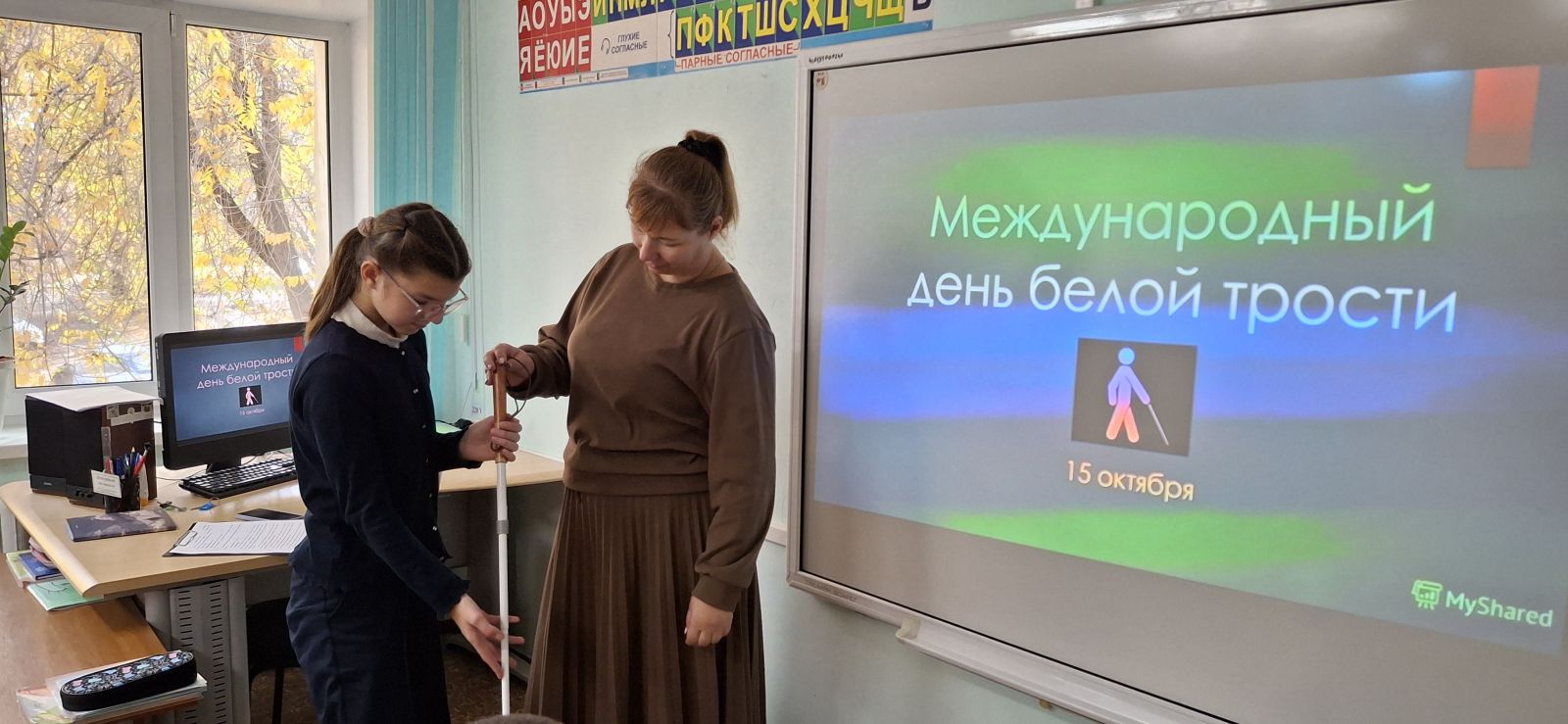 К Международному дню белой трости в детско-юношеском секторе центра адаптивного чтения Областной специальной библиотеки для слепых прошёл час толерантности «Талант может быть незрячим». Библиотекарь рассказала ребятам о Международном дне белой трости, символе слабовидящего и незрячего человека. Ребята посмотрели, как выглядит белая трость, узнали, зачем нужны собаки поводыри и сами попробовали походить с белой тростью. Так же ребятам рассказали об известных незрячих людях и их достижениях, таких как Луи Брайль, Галилео Галилей, Лина По, Диана Гурцкая и их достижениях.