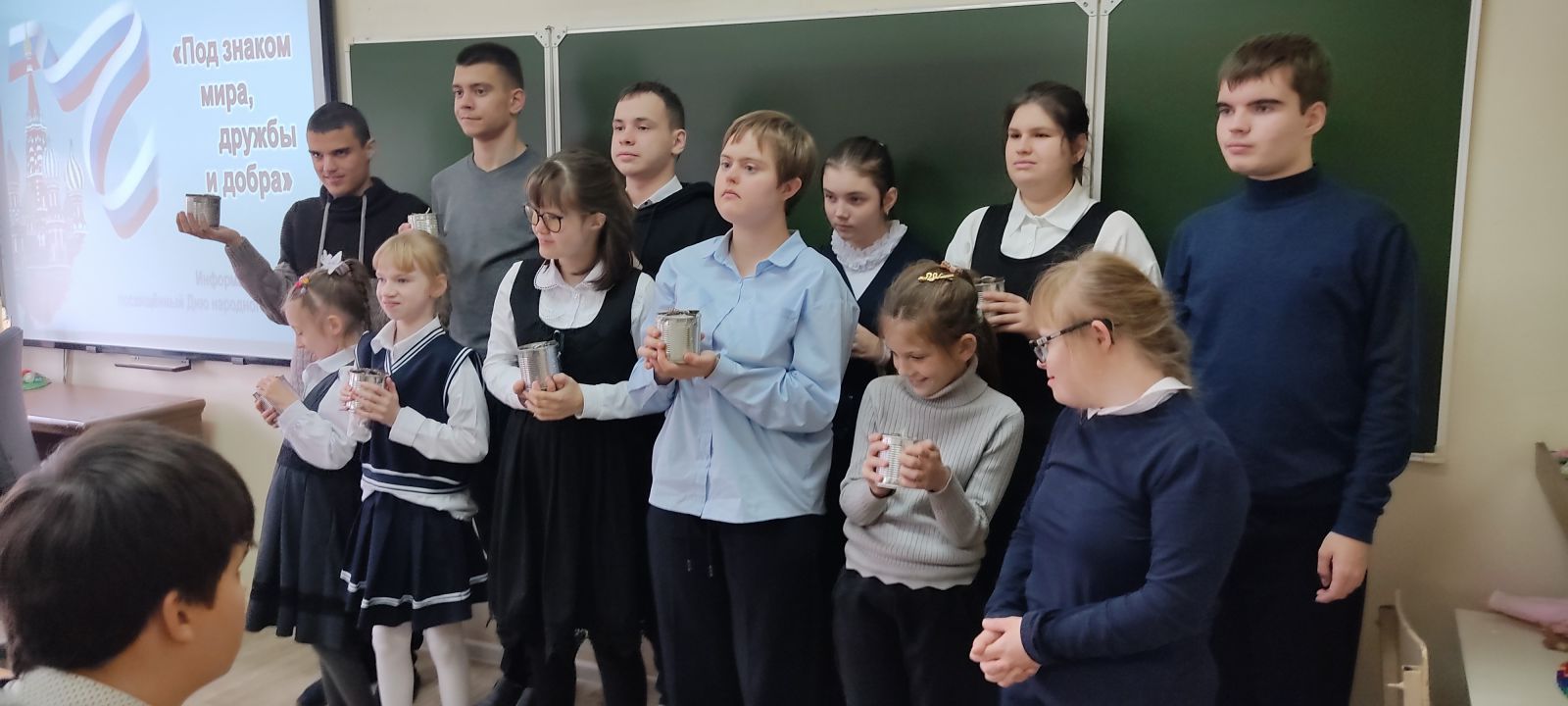 Мероприятие «Под знаком мира, дружбы и добра» рассказало о появлении праздника, о подвиге русского народа, сплотившегося для освобождения России от интервентов и захватчиков, о великом русском князе Дмитрии Пожарском и национальном герое Кузьме Минине. Школьники узнали о том, как в Смутное время внешние силы стремились ослабить и разделить нашу страну, как ополчение 1612 года объединило представителей разных народов, вероисповеданий и сословий (в нём сражались дворяне, крестьяне, казаки, купцы). Видео, мультфильм по теме и литература книжно-иллюстративной выставки помогли учащимся лучше понять всю важность и значение событий того времени для России.