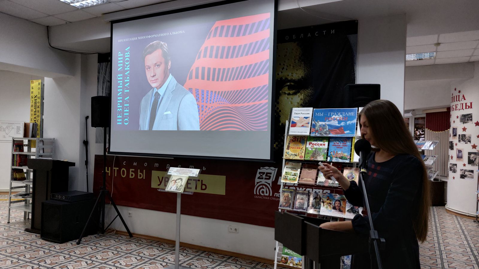 На первой творческой площадке участники акции погрузились в незримый мир Олега Табакова. Сотрудник отдела издательских и медиатехнологий Нина Грудзинская представила многоформатный альбом «Незримый мир Олега Табакова». Звучали отрывки из альбома в аудиоформате, воспоминания о мастере «ожили» в альбоме. Творчество Олега Табакова – это ярчайший пример того, как талант из Саратова смог покорить всю страну и стать частью мировой театральной и кинокультуры. Все участники акции, наши постоянные читатели, волонтёры с огромным интересом погрузились в альбом.