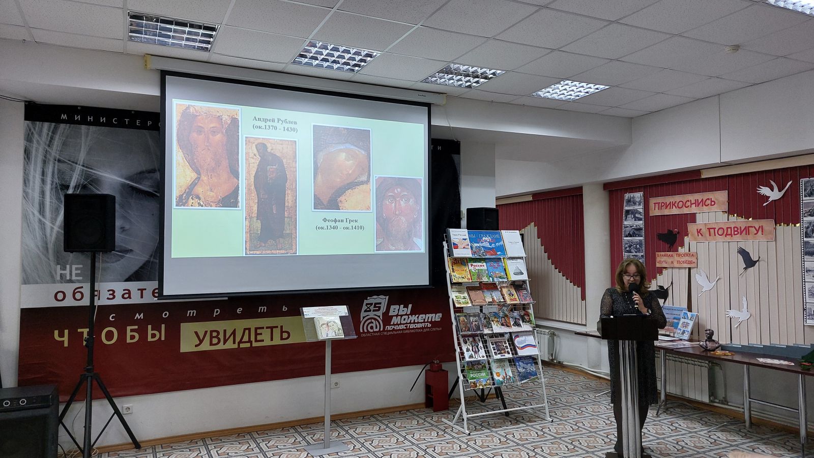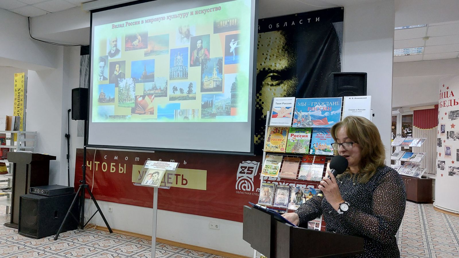 На площадке «Вклад России в мировую культуру и искусство» заведующая тифлобиблиографическим отделом Светлана Южакова увлекла всех в путешествие по миру русской культуры и искусства от времён древнерусской иконописи до творчества художников-авангардистов и знаменитых на весь мир композиторов. Прозвучал музыкальный отрывок из балета «Щелкунчик» Петра Ильича Чайковского.