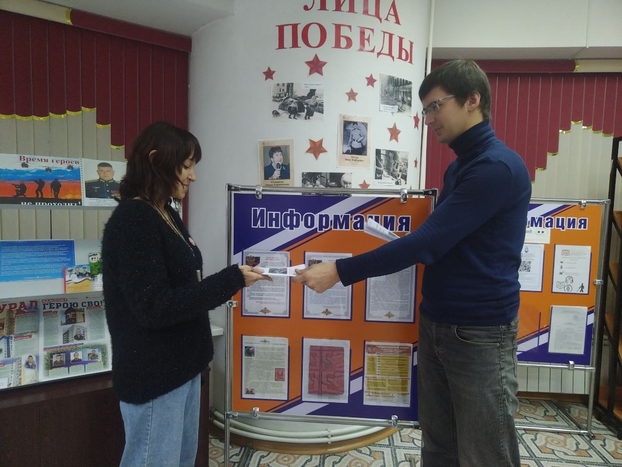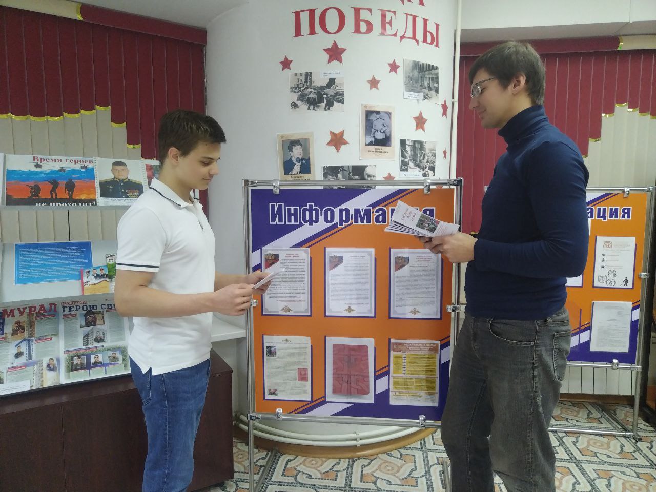 Центр социально-значимой и правовой информации подготовил стенд с информацией о Всероссийском дне призывника, выдержками из законодательных актов и прессы, и буклеты с памяткой, как вести себя молодым призывникам при призыве, куда обратиться за помощью и как проходит призыв по новым правилам.