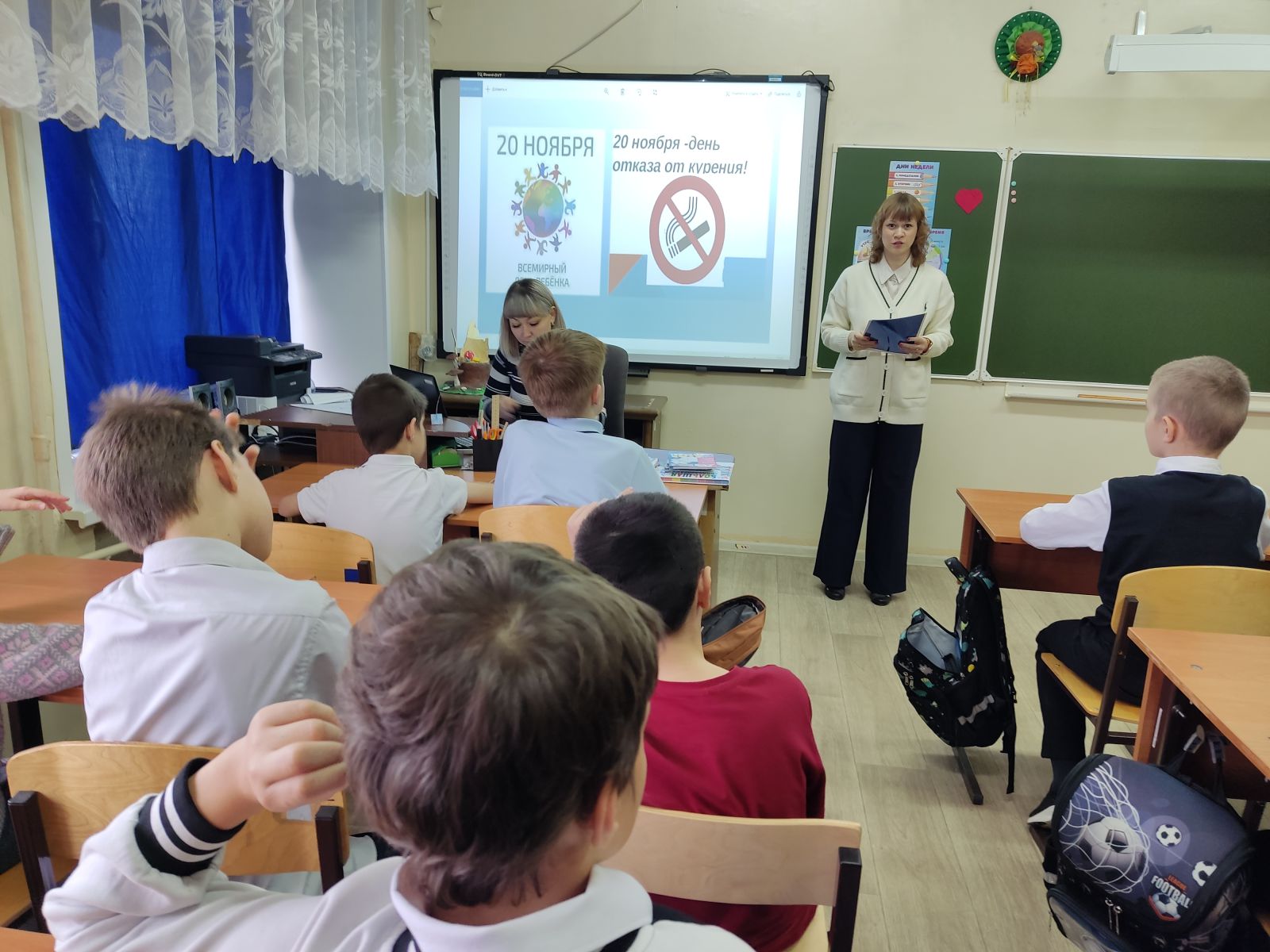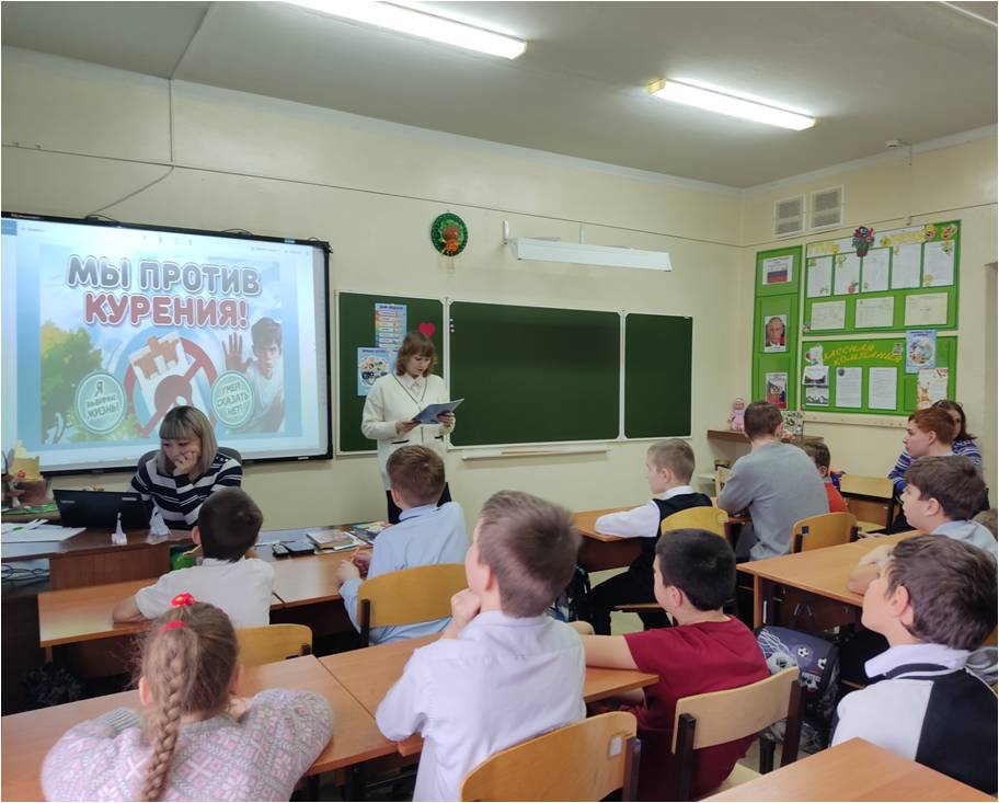 Школьники активно участвовали в беседе, получили памятки «Почему я никогда не буду курить!», буклеты о вреде курения и пользе здорового образа жизни. В завершение мероприятия был показан мультфильм «Трубка и медведь» – экранизация сказки Сергея Михалкова «Как Медведь трубку нашёл», наглядно демонстрирующий опасность курения.