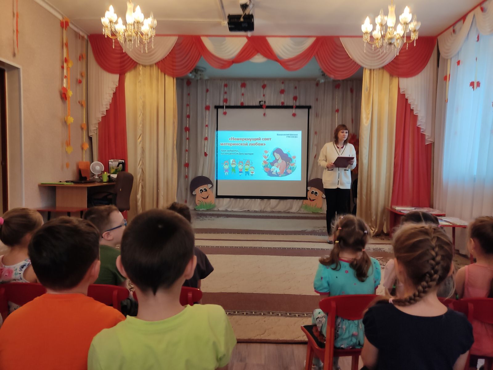 Балаковский филиал Областной специальной библиотеки для слепых провёл урок доброты «Немеркнущий свет материнской любви», посвящённый Дню матери, для воспитанников детского сада компенсирующего вида №3 «Радуга» (с группами для детей с нарушением зрения). Дети узнали о традициях празднования Дня матери, о том, откуда пришёл этот праздник в Россию и как отмечается в других странах. Юные читатели обсуждали, почему мамы так важны, что они делают для детей и как мы их благодарим; рассказали о том, какие у них мамы, кем они работают, и о том, как они помогают своим мамам. Ребята дружно участвовали в конкурсах, играх, отвечали на вопросы викторины, отгадывали загадки, составляли пословицы и поговорки. Малыши с особой теплотой и любовью вспомнили и прочитали красивые стихи о маме и посмотрели мультфильм. Дети с интересом познакомились с книгами, посвящёнными любви и заботе матерей, узнали сказки о добрых мамах и истории, которые подчёркивают важность материнской поддержки в жизни каждого из нас.