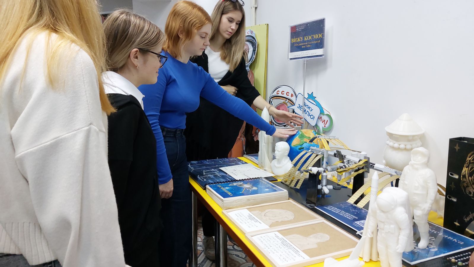 Тактильная выставка работает в рамках социального проекта для незрячих и слабовидящих «Вижу космос», который реализуется Саратовской областной общественной организацией Общероссийской общественной организации инвалидов «Всероссийское ордена Трудового Красного Знамени общество слепых» совместно с государственным учреждением культуры «Областная специальная библиотека для слепых» при поддержке Фонда президентских грантов.