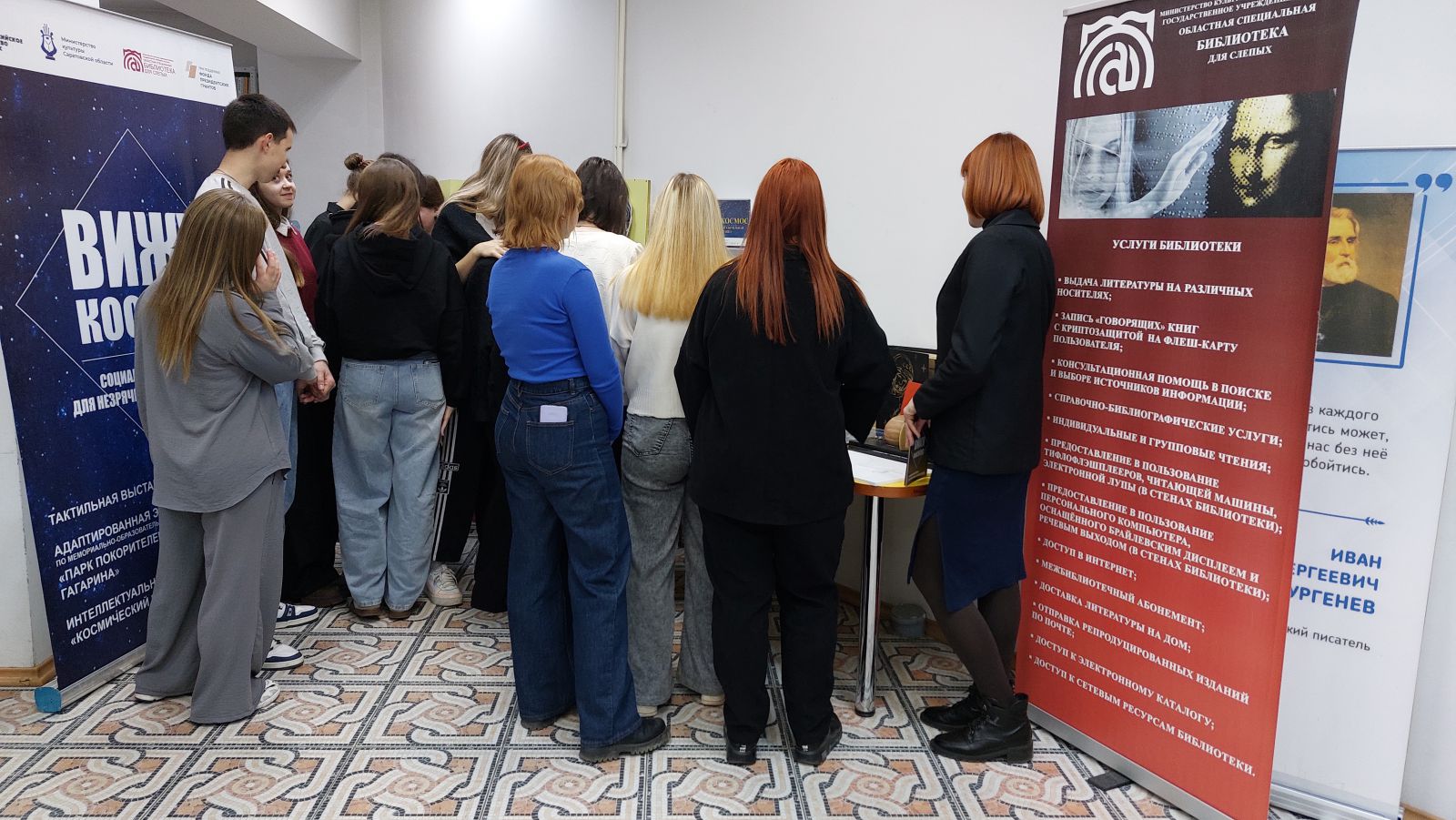 21 и 26 ноября для студентов I и II курсов Саратовского областного педагогического колледжа в ГУК «Областная специальная библиотека для слепых» были проведены обзоры тактильной выставки «Вижу космос», созданной при поддержке Фонда президентских грантов. Это событие стало ярким примером того, как современные технологии и креативный подход могут сделать познание мира захватывающим и доступным.