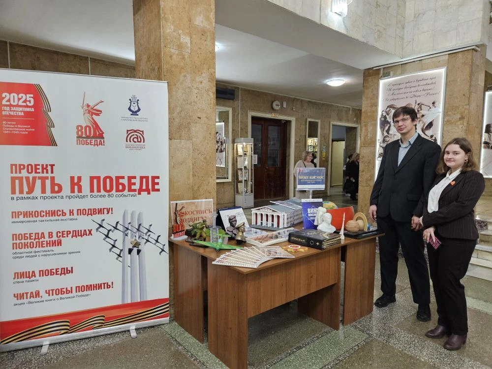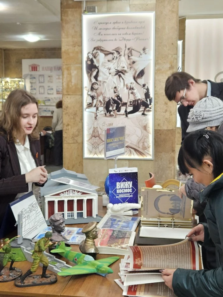 Наша библиотека представила передвижные тактильные выставки «Прикоснись к подвигу» и «Вижу космос». Участники семинара в выставочном пространстве дворца культуры «Россия» смогли прикоснуться к нашим уникальным выставкам.