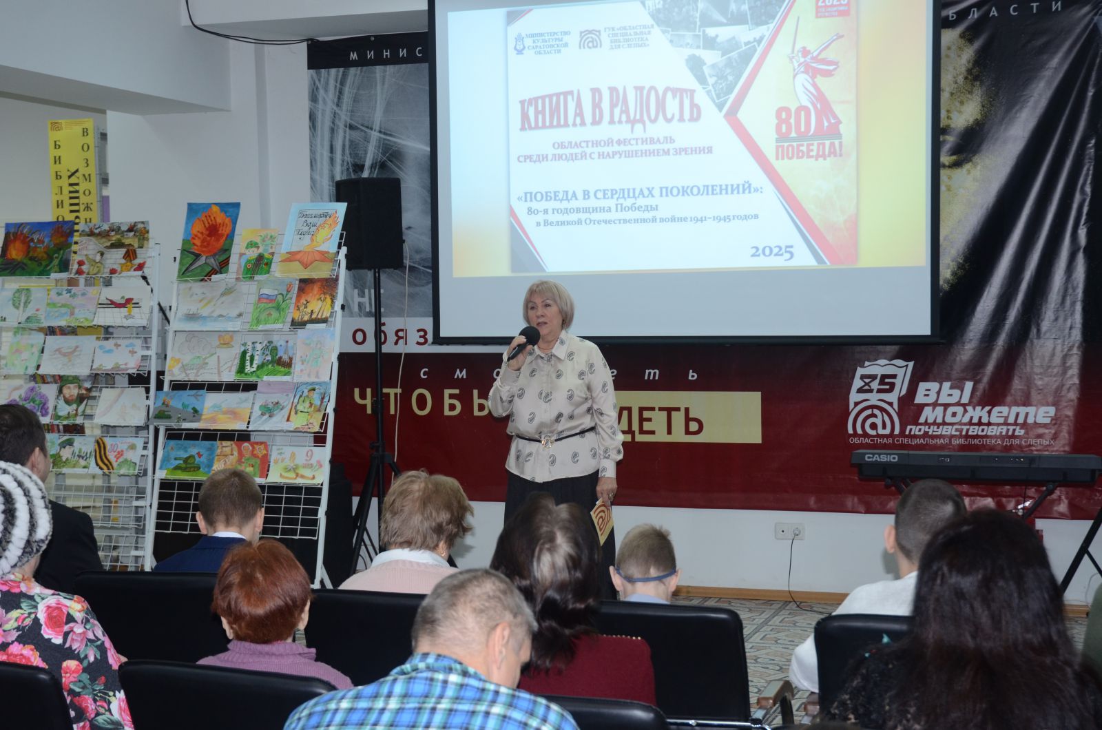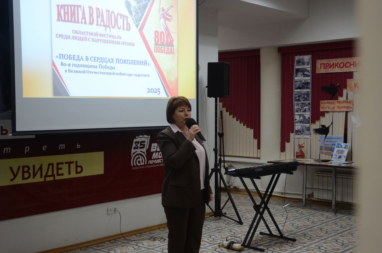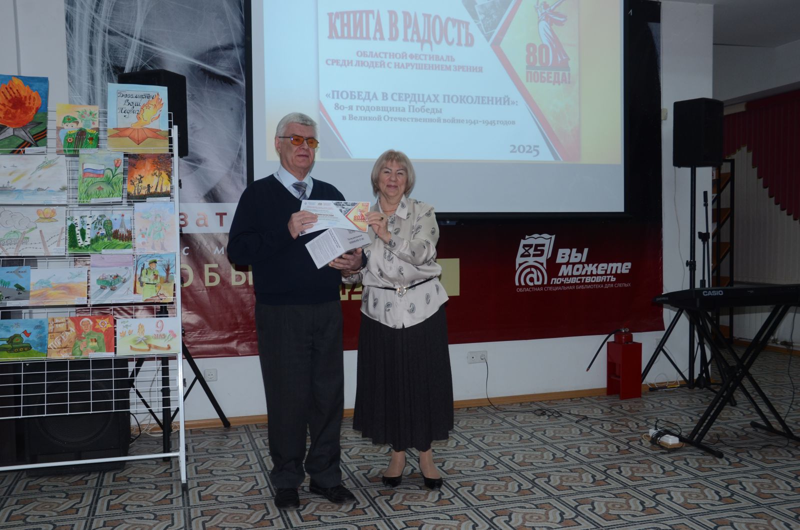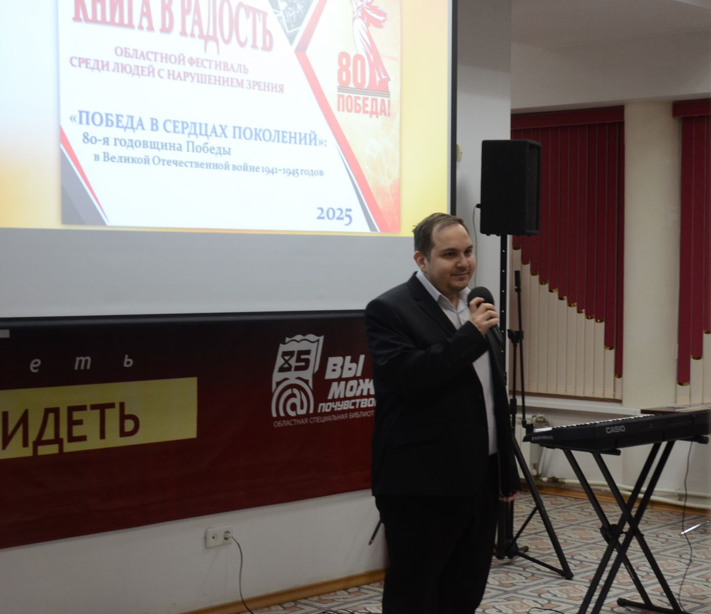 Директор ГУК «Областная специальная библиотека для слепых» Ольга Новикова отметила, что наша библиотека – библиотека для всех, это один из важных принципов нашей работы, мы становимся местом, где стираются границы между обычными и «особенными» читателями. В Год 80-летия Победы и в Год защитника Отечества библиотека вносит свой вклад в сохранение исторической памяти – множество мероприятий проходит с активным участием наших «особых» читателей. Таким образом, библиотека вносит большой вклад в содействие социокультурной реабилитации людей с ОВЗ. Ольга Ивановна подчеркнула важность областного фестиваля среди людей с нарушением зрения и что весь коллектив гордится каждым его участником!