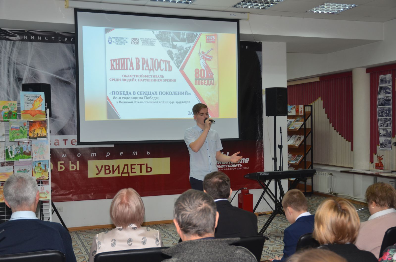 Заместитель председателя Саратовской общественной организации общероссийской общественной организации инвалидов «Всероссийское ордена Трудового Красного Знамени общество слепых» Геннадий Генералов отметил крепкие связи между библиотекой и обществом слепых. Рассказал, что много лет он входит в состав жюри областного фестиваля среди людей с нарушением зрения.