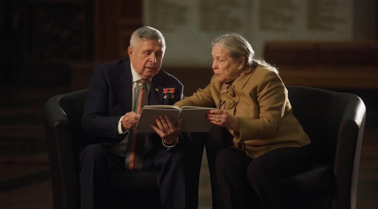 Центральной фигурой памятного видеоклипа стал летчик-космонавт, дважды Герой Советского Союза Виктор Савиных. В Зале Славы Музея Победы на Поклонной горе, где на мраморных пилонах золотом горят имена героев, он выступил в роли рассказчика, перелистывая страницы своего фотоальбома.