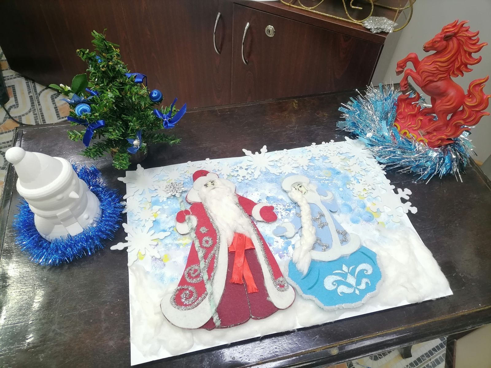 Для большего погружения в мир чудес и волшебства, выставка дополнена тактильными экспонатами. Необязательно покупать готовые фигуры Деда Мороза и Снегурочки на Новый год – их можно изготовить и самостоятельно из подручных материалов. Новогодняя тактильная аппликация яркое украшение выставки.