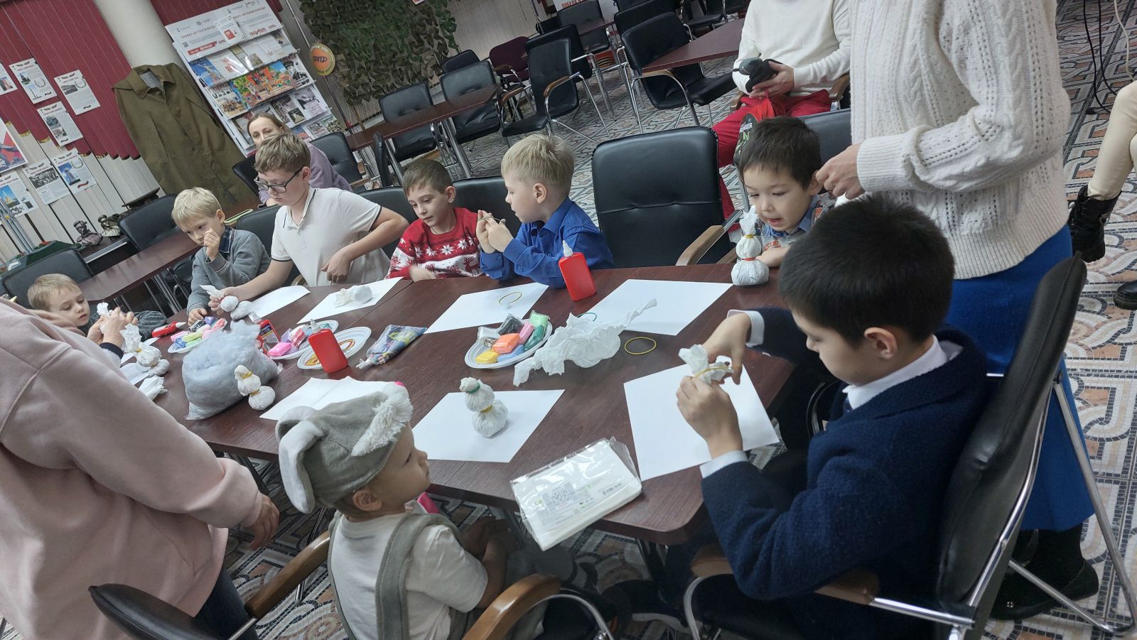 Своими руками из ваты и бумажных салфеток, клея и отличного настроения участникам детям предложили смастерить снеговика, который станет отличным подарком к Новому году для близких, ведь не секрет, что самый дорогой подарок – это тот, который ребенок смастерил своими руками.