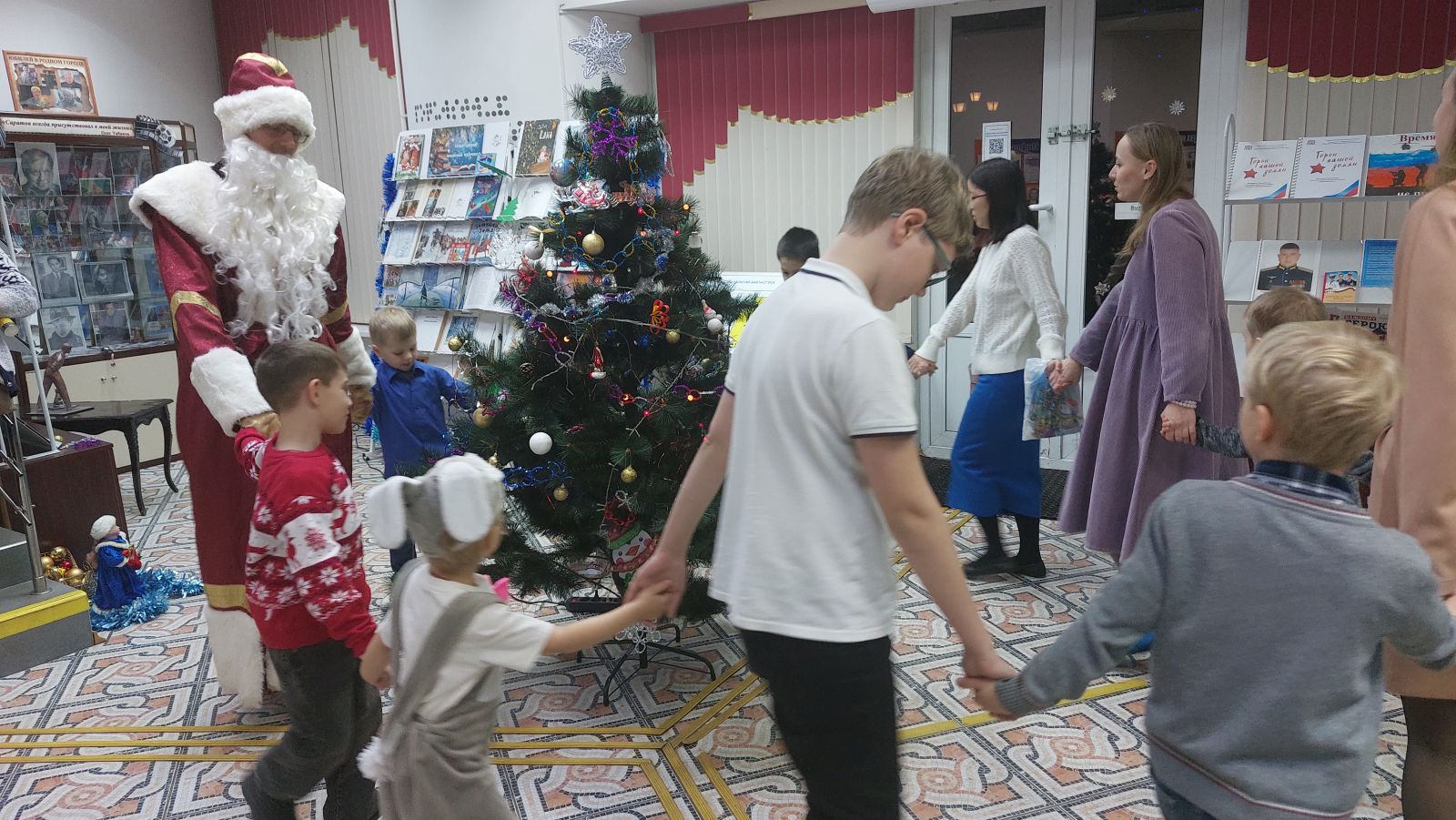 После мастер-классов и новогоднего хоровода была организована экскурсия по нашей библиотеке и проведён обзор выставки “Время героев не проходит!”, посвящённой нашим героям-землякам - участникам специальной военной операции.