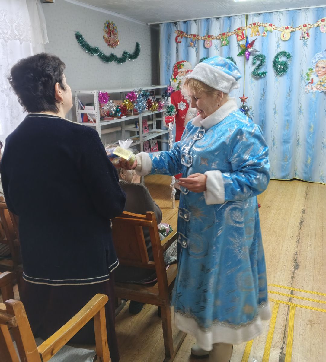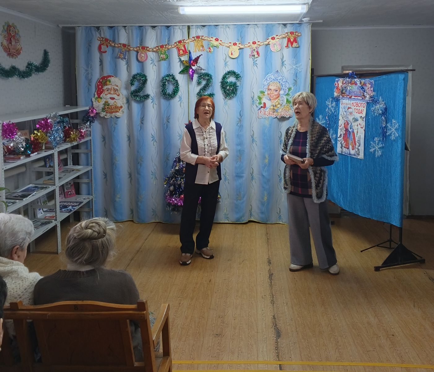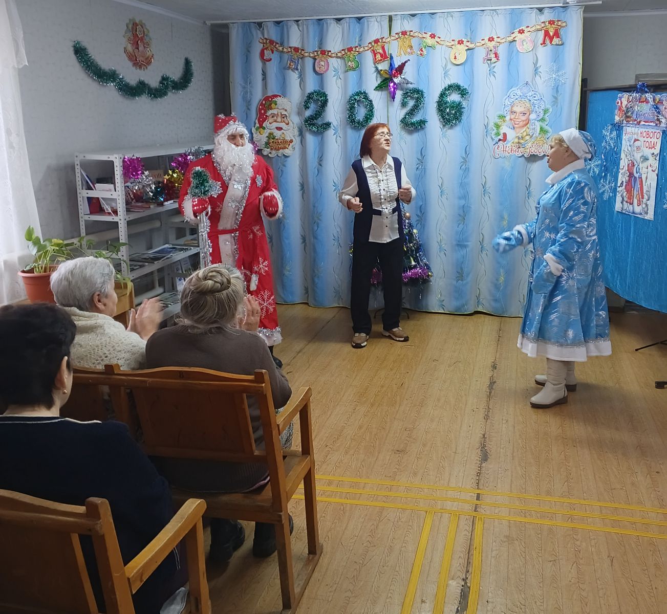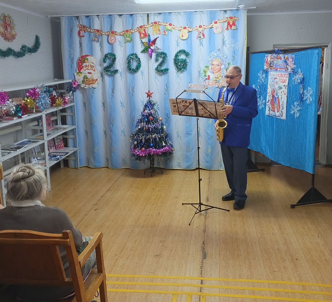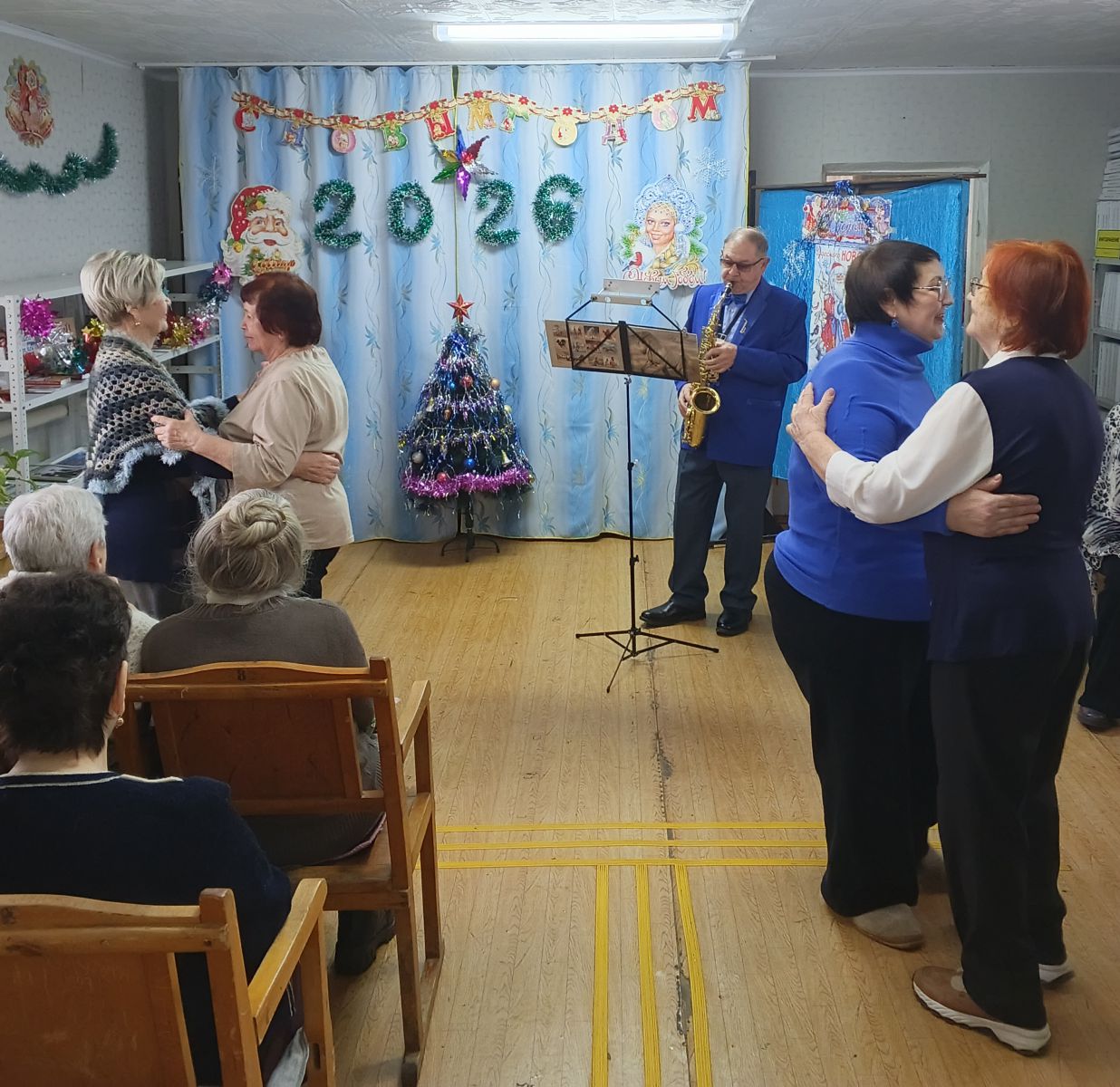 Вечер сопровождался песнями в исполнении Селиховой А.Ф. и Конышевой А. Д. Под звучание саксофона в исполнении Рыженкова Геннадия читатели закружились в танце. Атмосфера вечера была дружеской и по-новогоднему радостной. Гости с удовольствием пели и танцевали под задорную музыку. Каждый участник вечера получил новогодний подарок, прочитав стихотворение и исполнив песню, посвящённую Новому году. Читатели и гости библиотеки с удовольствием отгадывали загадки о зиме и про Новый год. Этот праздник важен для каждого без исключения. Взрослые, ощутив праздничное настроение, снова начинают верить в сказку, искренне восхищаются и радуются предстоящему празднику. Неожиданное появление главных героев на новогоднем празднике – Деда Мороза и Снегурочки – только дополняют и придают красочность этому событию.