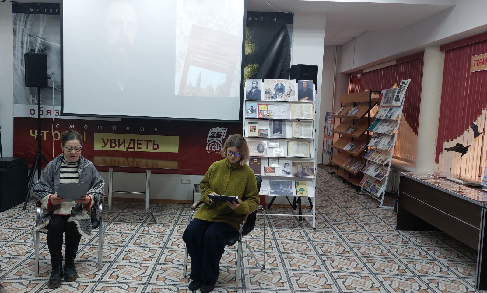 Оформлена и представлена вниманию читателей книжная выставка «Писатель мудрых сказок», на которой литература из фонда библиотеки повествует о жизни и творчестве писателя, а также сборники художественных произведений М. Е. Салтыкова‑Щедрина.