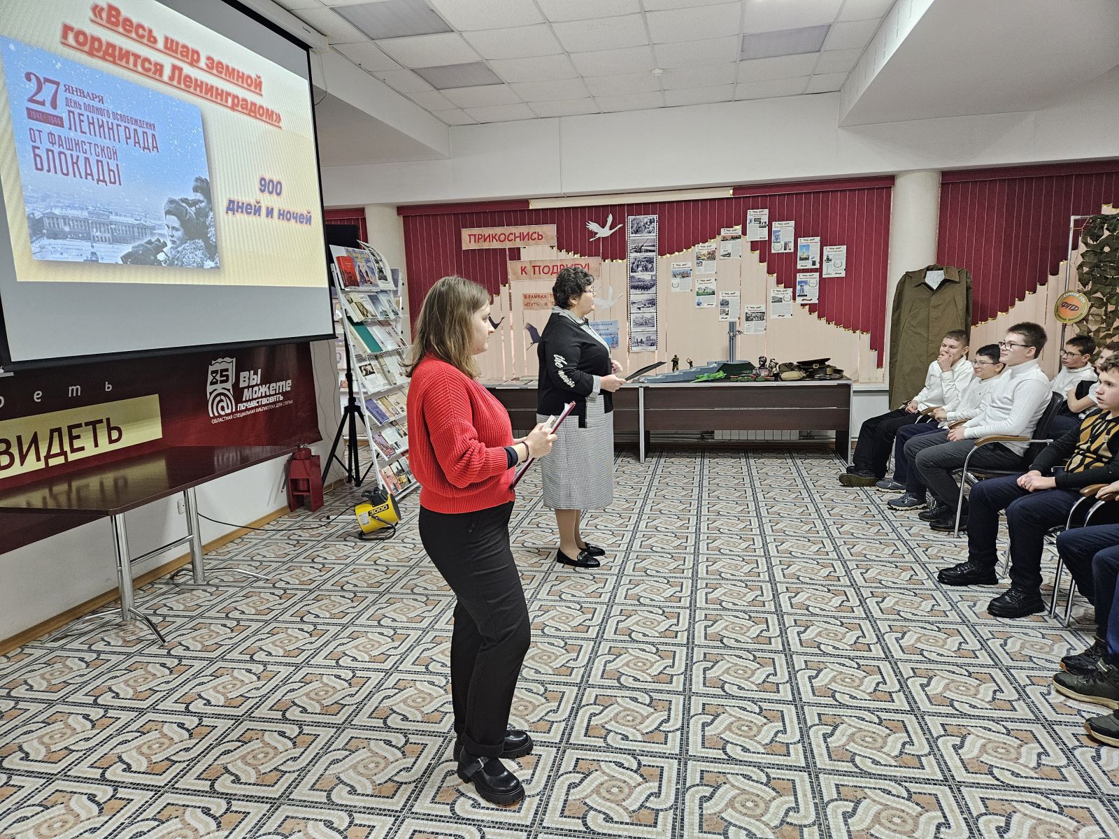 В Областной специальной библиотеки для слепых прошёл урок памяти «Весь шар земной гордится Ленинградом». На мероприятии присутствовали учащиеся 6А класса СОШ №18 имени О.П. Табакова.