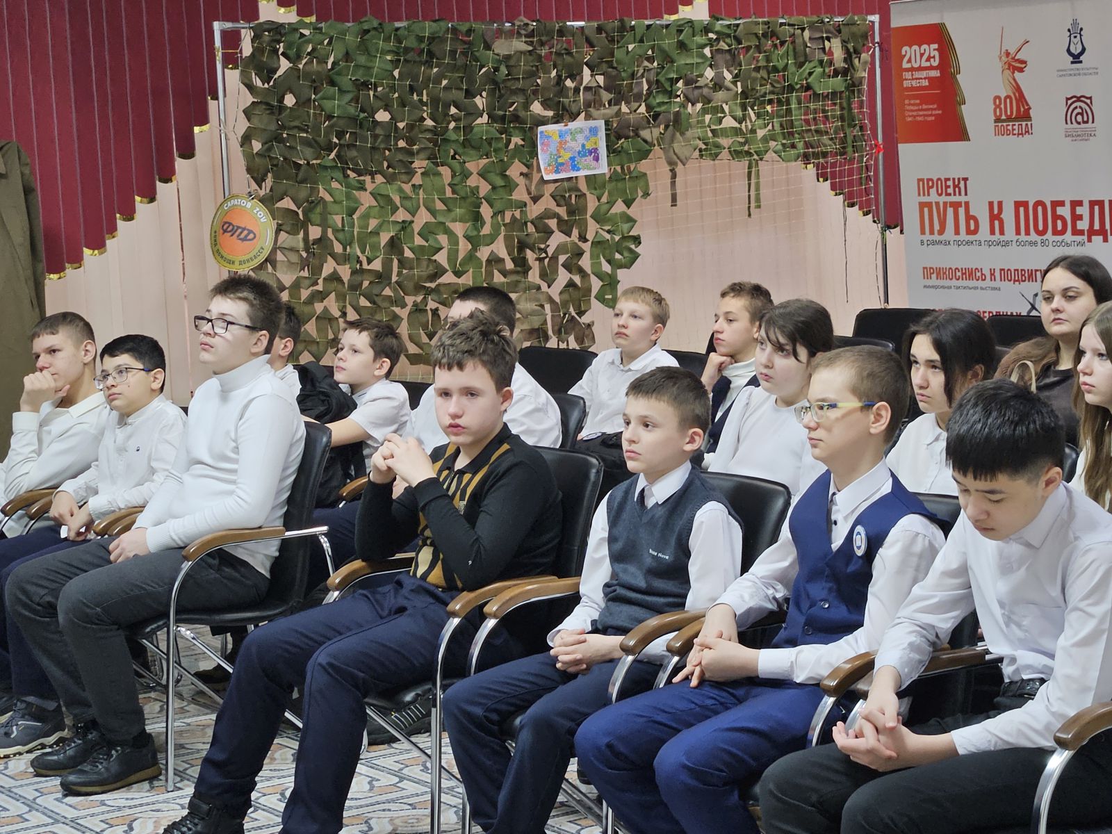 С большим вниманием, дети слушали рассказ, что город не просто жил, в холоде, в отсутствие электричества, под непрекращающимися бомбежками в Ленинграде работали школы и библиотеки.