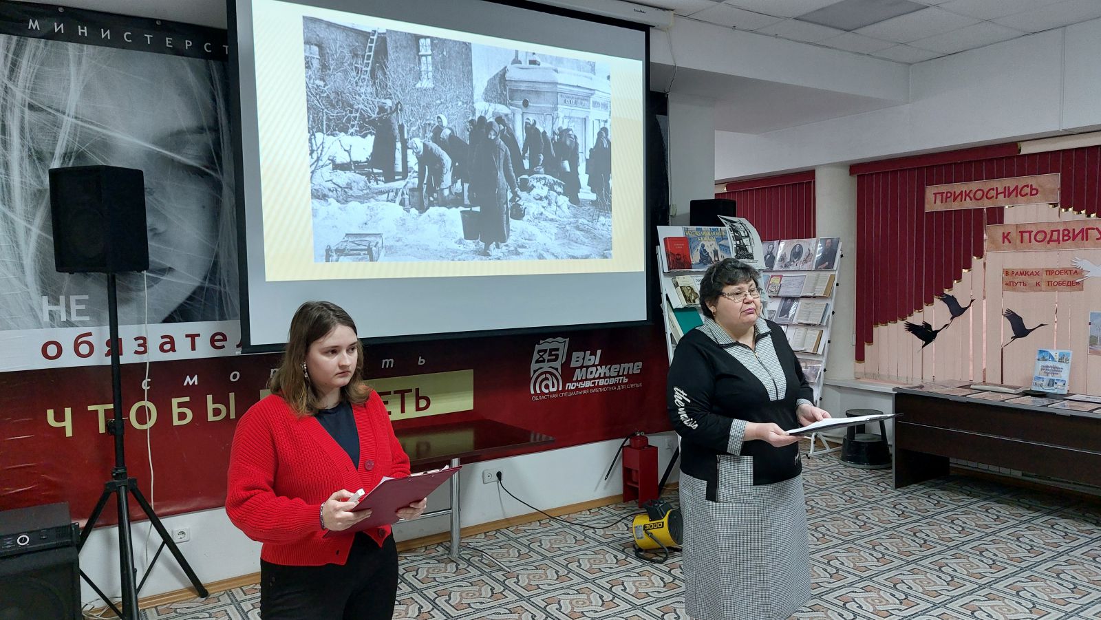 На мероприятии директор Областной специальной библиотеки для слепых Ольга Ивановна Новикова рассказала ребятам, что в этот день, 27 января 1944 года, была полностью снята блокада города на Неве, которая продолжалась 872 дня. Блокада Ленинграда стала символом стойкости и мужества людей, способных вынести любые испытания ради свободы и независимости своей Родины.
