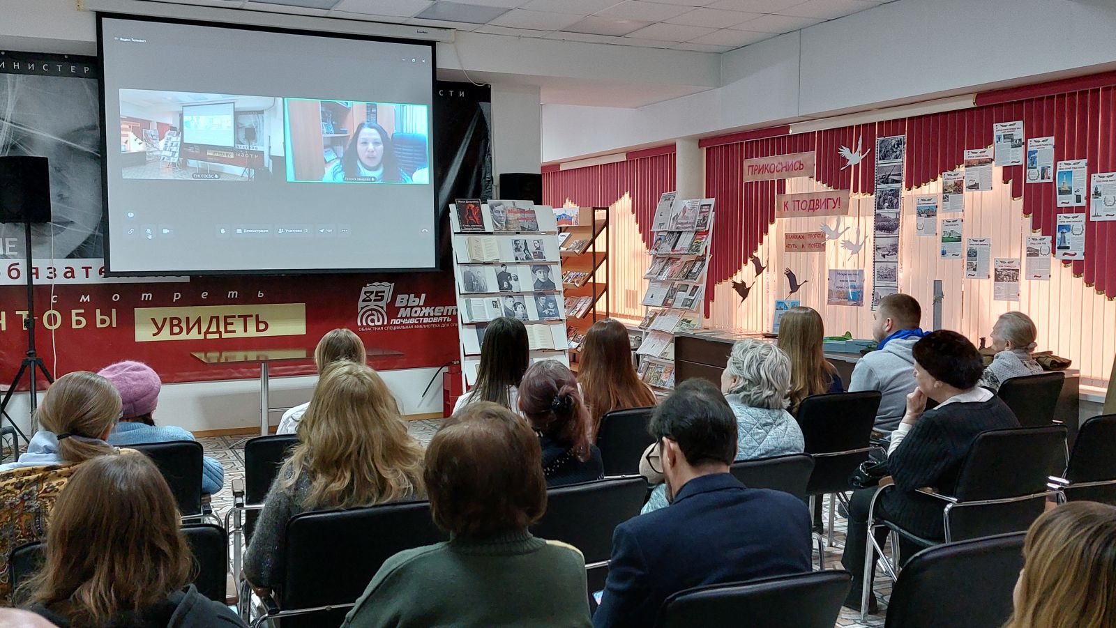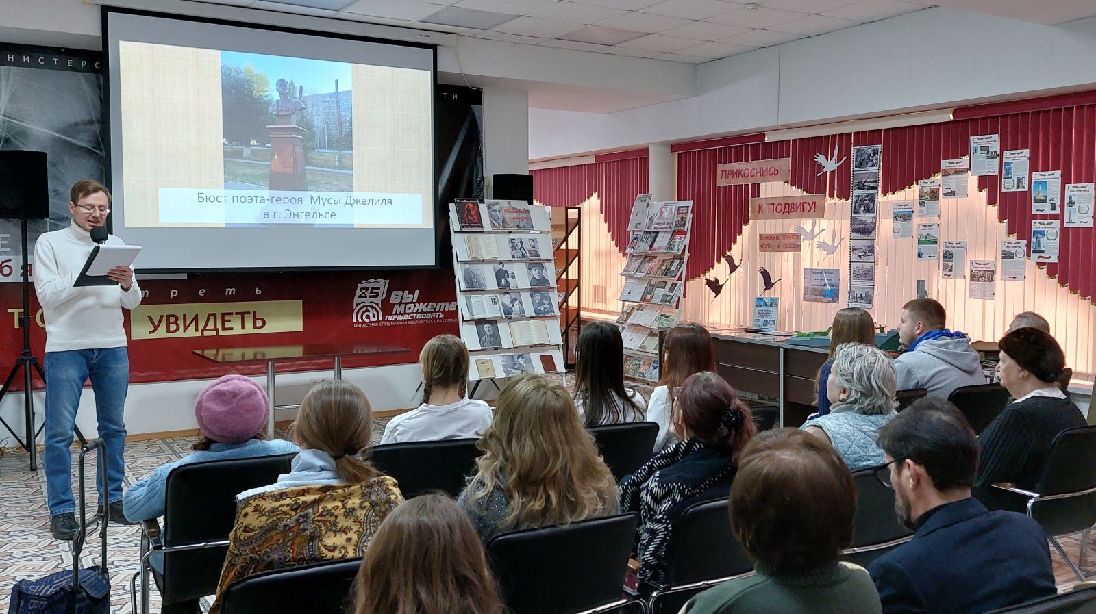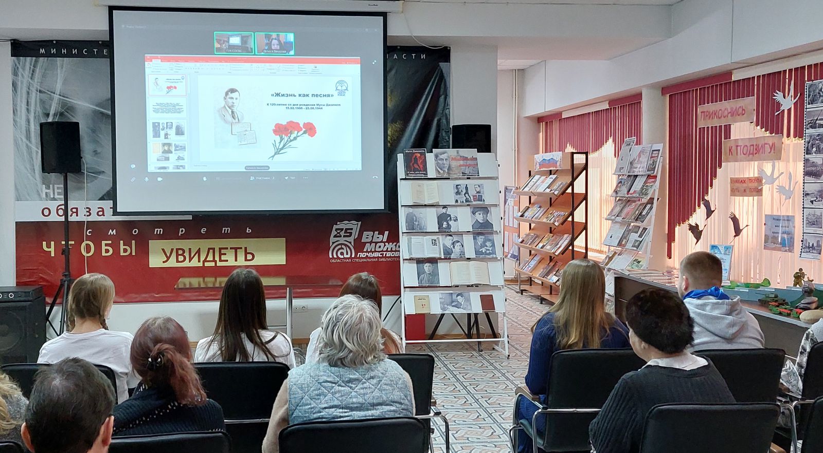 В этот день в ГУК «Областная специальная библиотека для слепых» состоялся телемост с ГБУК РТ «Республиканская специальная библиотека для слепых и слабовидящих им. Ш.К. Еникеева» (г. Казань) к 120-летию со дня рождения Мусы Джалиля (1906 – 1944). Это мероприятие подчёркивает уникальный многонациональный характеров народов Российской Федерации – сотни народов живут в мире и согласии. Особой темой звучал подвиг народов СССР в годы Великой Отечественной войны 1941-1945 гг. Телемост позволил нашим постоянным читателям, волонтёрам, коллективу библиотеки прикоснуться к подвигу народов разных национальностей. 15 февраля 2026 года мы будем отмечать 120-летие Мусы Джалиля, не только выдающегося поэта, но и символа несгибаемой воли и патриотизма. Его «Моабитская тетрадь», созданная в условиях неволи, стала одним из самых пронзительных свидетельств Великой Отечественной войны.