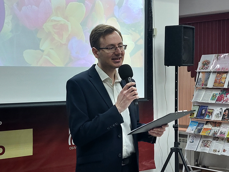 Торжественную часть мероприятия открыла директор Областной специальной библиотеки для слепых, заслуженный работник культуры РФ Ольга Ивановна Новикова. В своём обращении к присутствующим дамам она пожелала каждой гостье прежде всего семейного тепла и искреннего внимания. Ольга Ивановна выразила уверенность, что в праздничный день заботы со стороны близких станет ещё больше, но подчеркнула, как важно, чтобы это тепло сопровождало женщину ежедневно. Она пожелала гостьям всегда находить время для общения с родными и любимыми людьми, отметив, что этот праздник всегда отзывается в её сердце особым светом. В лице присутствующих Ольга Ивановна поздравила всех женщин нашей страны — бабушек, мам, сестёр, жён и внучек, пожелав счастья и благополучия каждой семье.