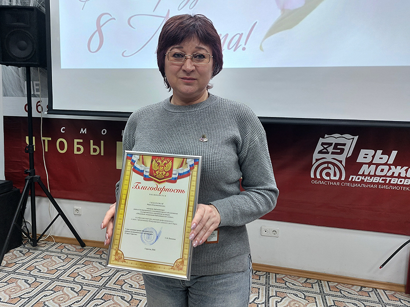 Особым моментом праздника стала церемония награждения. За добросовестный труд, высокий профессионализм и в связи с празднованием Международного женского дня 8 Марта благодарности от имени главы администрации Фрунзенского района МО «Город Саратов» Сергея Владимировича Пименова получили: заведующая отделом инновационно-методической работы Елена Пронина и ведущий библиотекарь отдела дистанционного и внестационарного обслуживания Мария Сидорова. Важно отметить, что признание профессиональных заслуг наших коллег вновь подчеркивает, что за успехами библиотеки стоит ежедневный, вдохновенный труд женщин, которые мастерски сочетают в себе чуткость души и высокий профессионализм.
