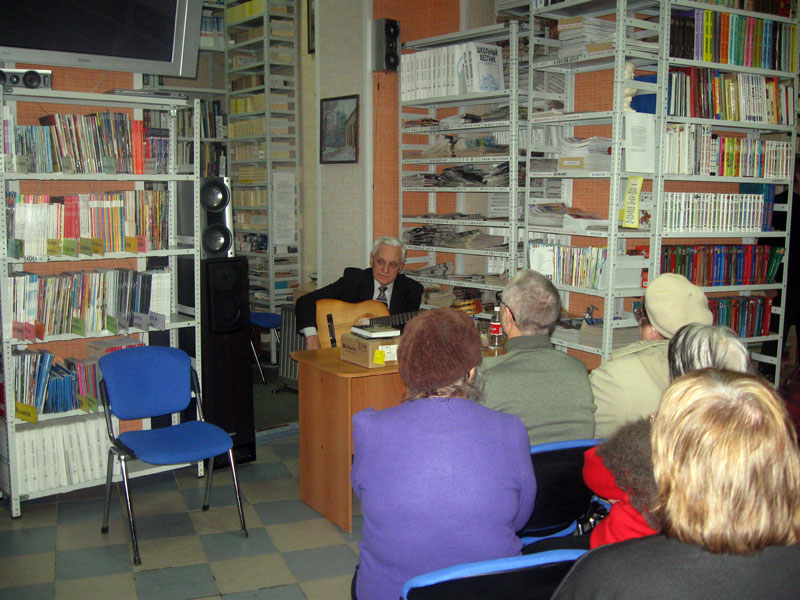 Книги известного саратовского краеведа и писателя Виктора Семенова давно стали популярными среди любителей отечественной истории. Наши читатели с удовольствием читают книги автора, которые изданы сектором издательства и репродуцирования библиотеки в аудио формате. В литературной гостиной состоялась очередная встреча с автором замечательной трилогии – «Саратов купеческий», «Саратов дворянский», «Саратов мещанский». Виктор Николаевич ответил на вопросы читателей о времени, когда начал заниматься писательской деятельностью, как работает над книгами, с какими трудностями ему приходиться сталкиваться при издании книг, о его хобби. Стойким увлечением Виктора Семенова остается авторская песня. На этой встрече он исполнял собственные песни в сопровождении гитары. Библиотеке и нашим читателям он подарил компакт-диски с записями его песен в авторском исполнении и книгу «Лошади в старом Саратове».