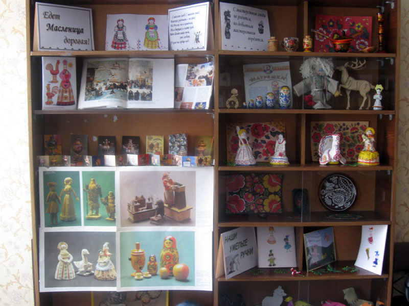 Заведующая сектором искусств районной Центральной библиотеки Т. Шатилова предложила книжно-иллюстративную выставку "Широкая Масленица" (работы художников XVIII - XX вв.: В. Сурикова, Б. Кустодиева, А. Панова, К. Маковского, Ж. Делабарта).