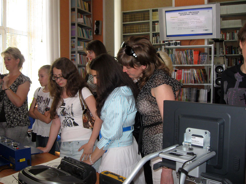 В преддверии Всероссийского дня библиотек состоялась пилотная в Саратовской области акцию «День и ночь открытых дверей в библиотеке». 20 мая мы решили продлить время работы до 22-00 часов. В этом году праздник растянулся во времени на два дня. Предшествовала празднику хорошая подготовка. Кропотливый труд организаторов удалось подать в виде интересной и разнообразной программы. В первый день библиотеку посетили тифлопедагоги, педагоги-дефектологи, студенты кафедры коррекционной педагогики Педагогического института СГУ им. Н.Г.Чернышевского, специалисты детского сада компенсирующего вида № 196, а также родители, имеющие детей с ограничениями зрения. На протяжении всего праздника в библиотеке была представлена выставка и демонстрация работы специальных технических средств, обеспечивающих доступность информационных ресурсов для инвалидов по зрению. Вниманию гостей были представлены книжно-иллюстративные выставки, центральная из которых позволила познакомиться с уникальным фондом литературы по тифлологии и дефектологии. Гости познакомились с работой отделов библиотеки, с возможностями тифлоинформационного центра, издательского сектора, филиалов библиотеки и т.д. Для родителей незрячих и слабовидящих детей была организована встреча с кандидатом педагогических наук, тифлопедагогом, учителем высшей категории Л.В. Мясниковой. Состоялась презентация учебного видеофильма «Основы воспитания слепых и слабовидящих детей». Специалисты дали консультации всем заинтересованным лицам.